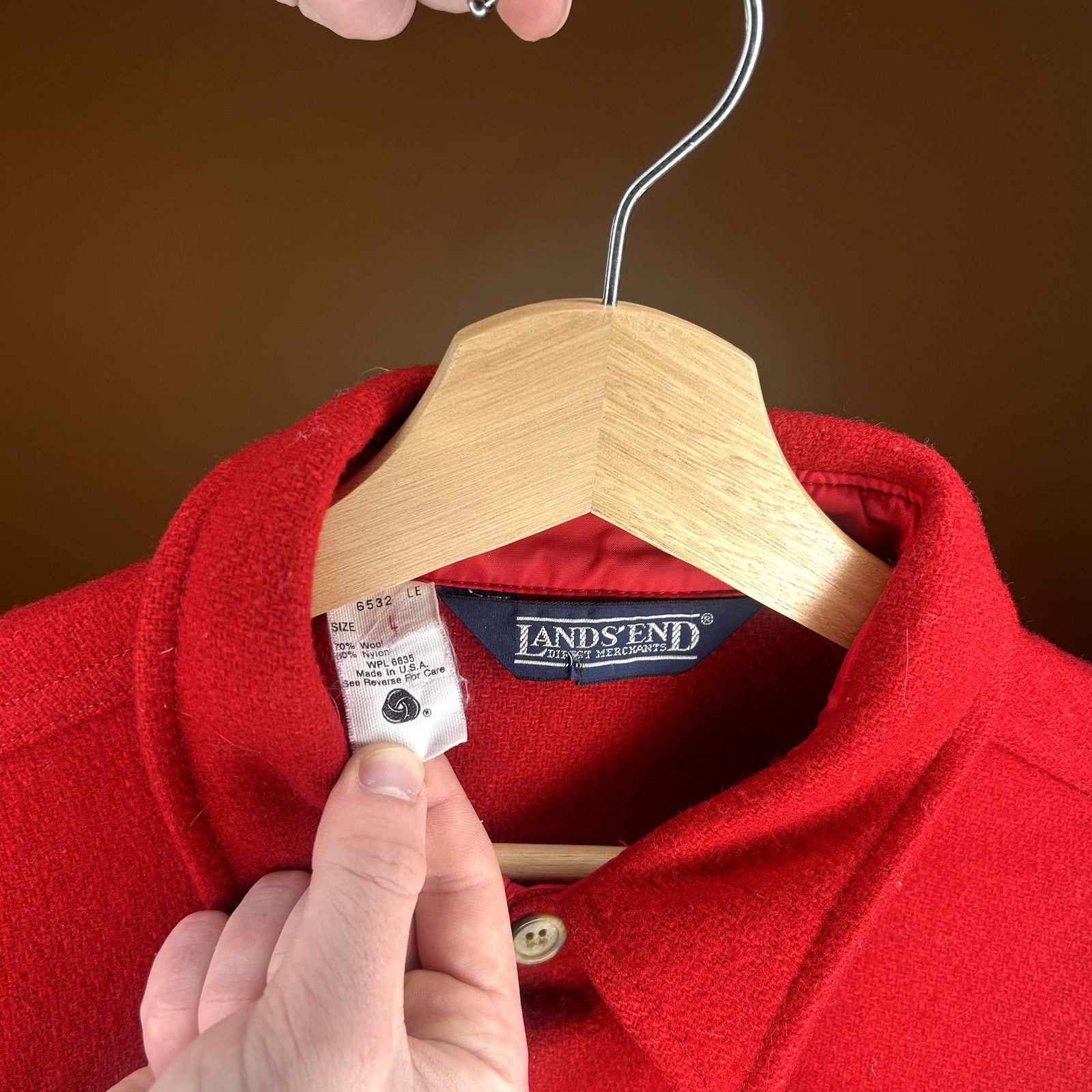 Vintage Lands End Red Wool Button Up T-Shirt Large
